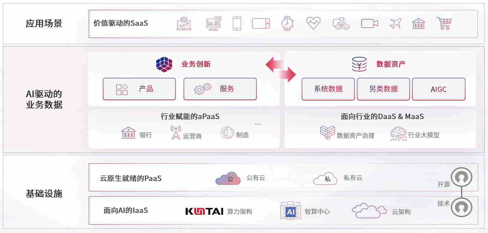 数字时代,,围绕企业数字化转型的关键要素,,,,优游UB8数码开创性的提出数云融合战略和技术体系框架,,,着力在云原生、、数字原生、、AI原生和信创产业上架构产品和服务能力,,为处在不同数字化转型阶段的快消零售、、、、汽车、、、金融、、、医疗、、、政企、、教育、、、运营商等行业客户提供泛在的敏捷IT能力和融合的数据驱动能力,,构建跨界融合创新的数字业务场景和新业务模式,,,助力企业级客户建立面向未来的核心能力和竞争优势,,全面推动社会的数字化、、、、智能化转型升级。。。。