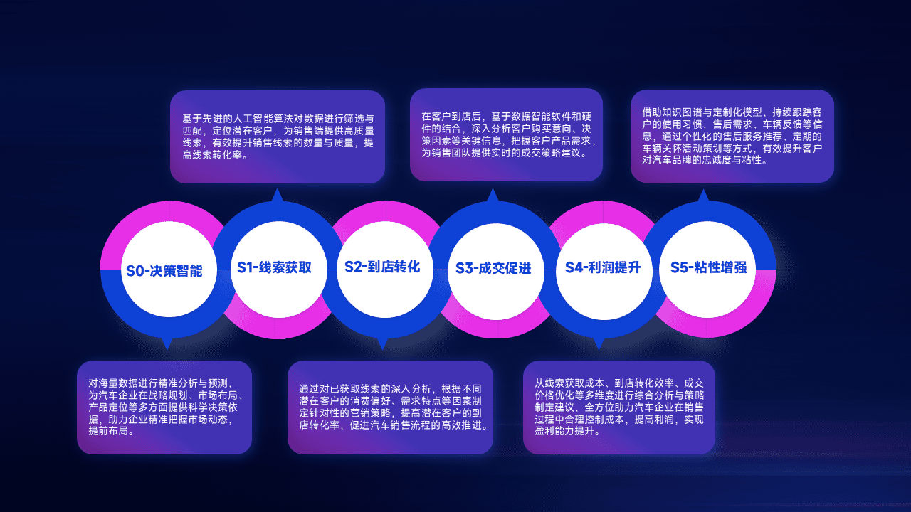 通过拓宽潜在客户来源、、、、优化线索分配并提高到店转化率,,,,以增强销售效率。。同时,,利用线索数据不断优化分析模型,,,有效提升转化率,,扩大营销影响力。。。。